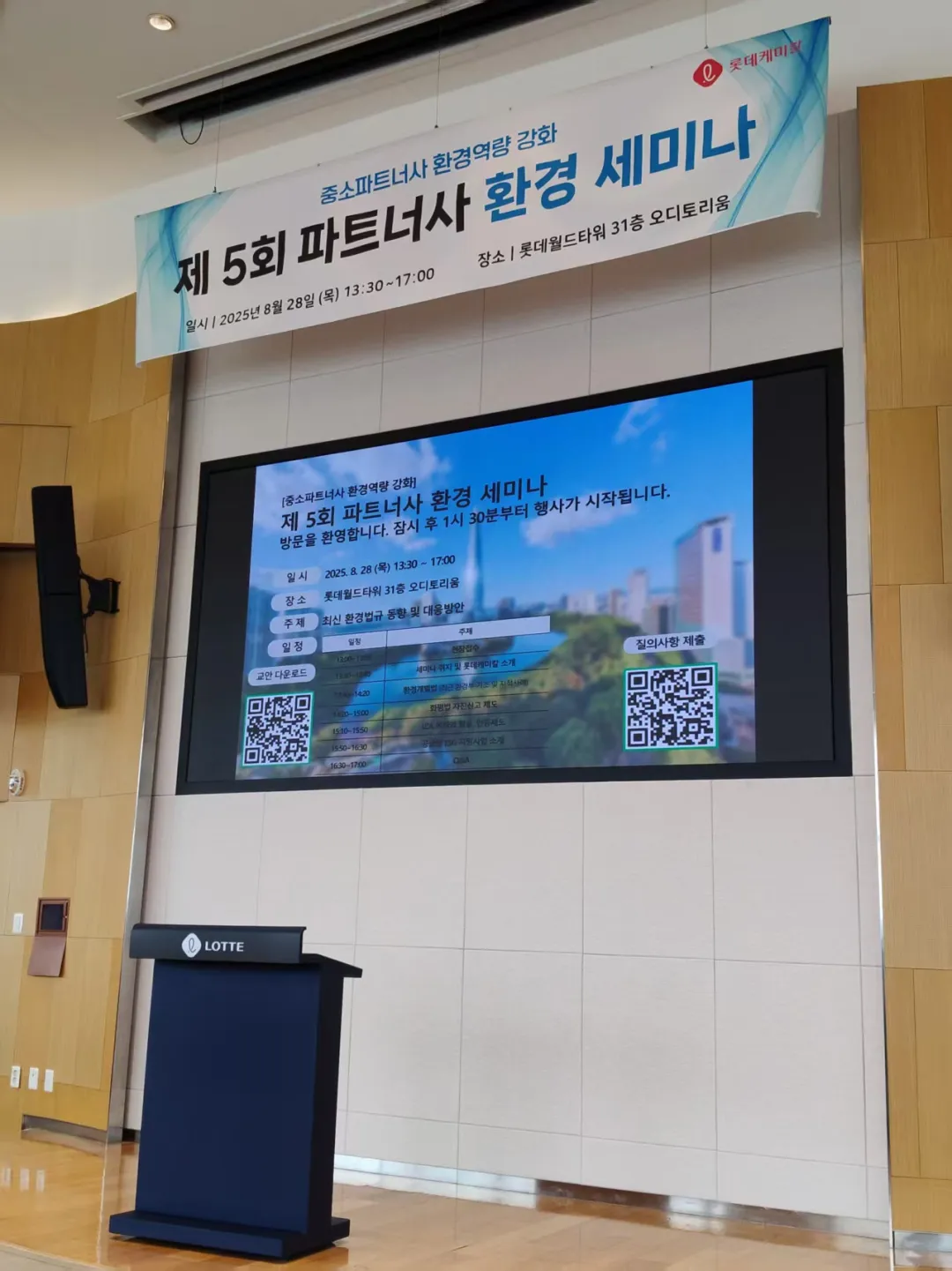 本届研讨会以"可持续供应链管理中的环境法规动态"为主题,聚焦全球环境政策变化及其对企业经营的实际影响。自2022年起,该研讨会已连续举办五届,成为乐天化学与合作伙伴之间分享知识、共谋发展的重要平台。
