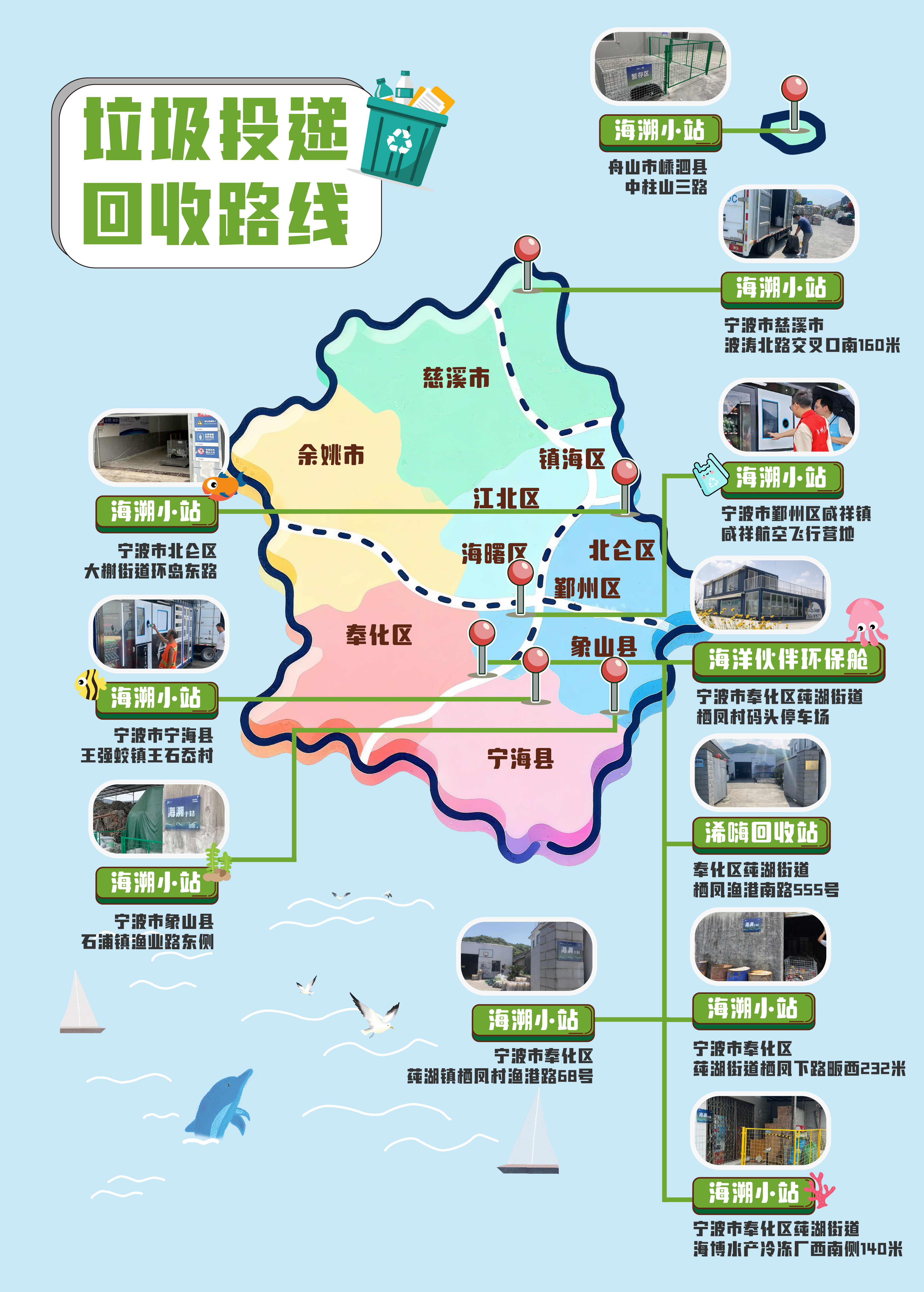 海洋伙伴环保舱在宁波和舟山分布的11个点位,是您实践环保行动的最佳去处。这些环保舱分布在沿海村落、海岸边等位置,无论您是在日常散步、上班途中还是周末出游,都能找到方便您投递的点位。