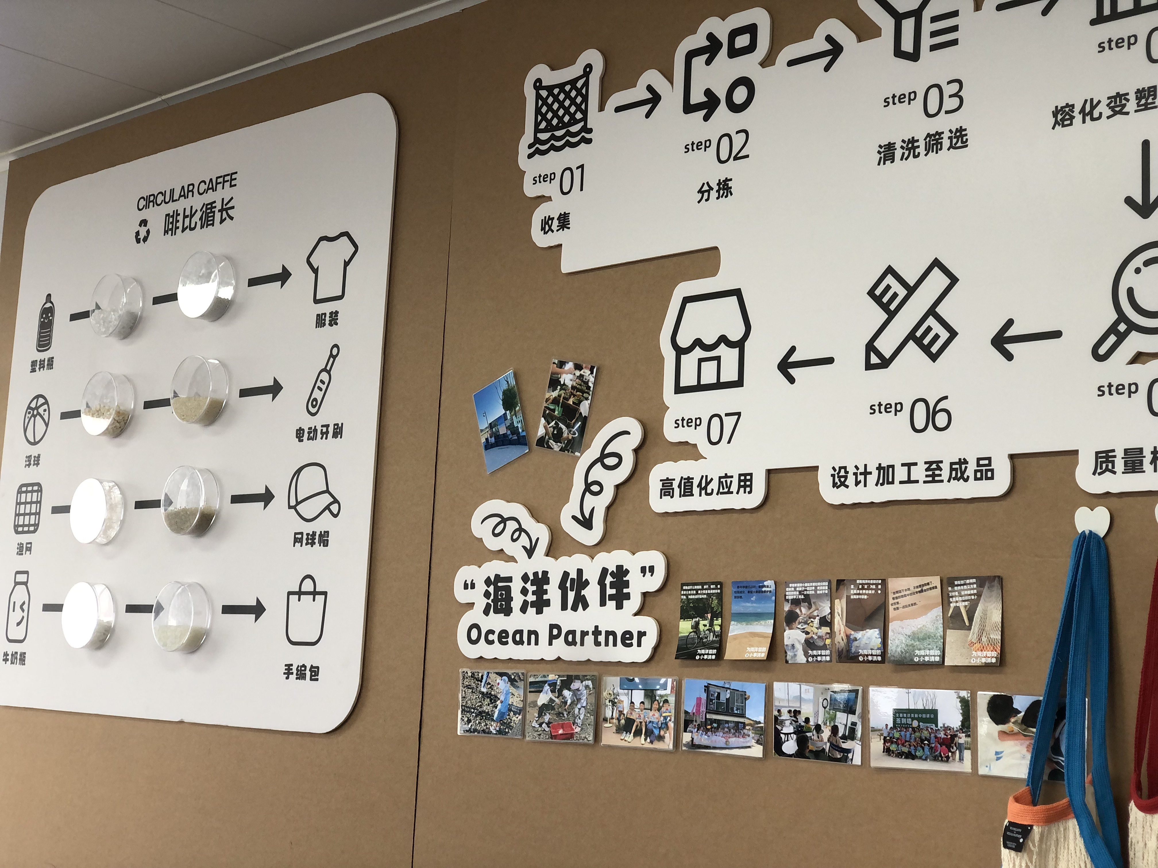 “海洋伙伴”项目致力于将海洋废弃物转化为宝贵资源,全流程化开展收集、运输、分类、再生、深加工和高值化应用,用于生产符合国际生态环保理念的包装材料、工业制造、服装家纺、文创产品等,较普通塑料溢价率在50%以上。通过对海洋塑料再生利用的碳足迹标定,获得国际权威机构认证,实现海洋环境治理、资源循环、共同富裕融合发展。