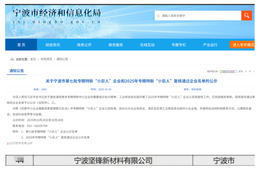2025“小巨人”公示认定通过率大约为23%,竞争非常激烈。坚锋®有幸能从众多优秀企业中脱颖而出并成功入选,不仅是对坚锋®长期以来坚持技术研发与创新驱动的最高肯定,也是对坚锋®在塑料循环与碳中和先进材料技术领域的创新突破的认可与肯定。