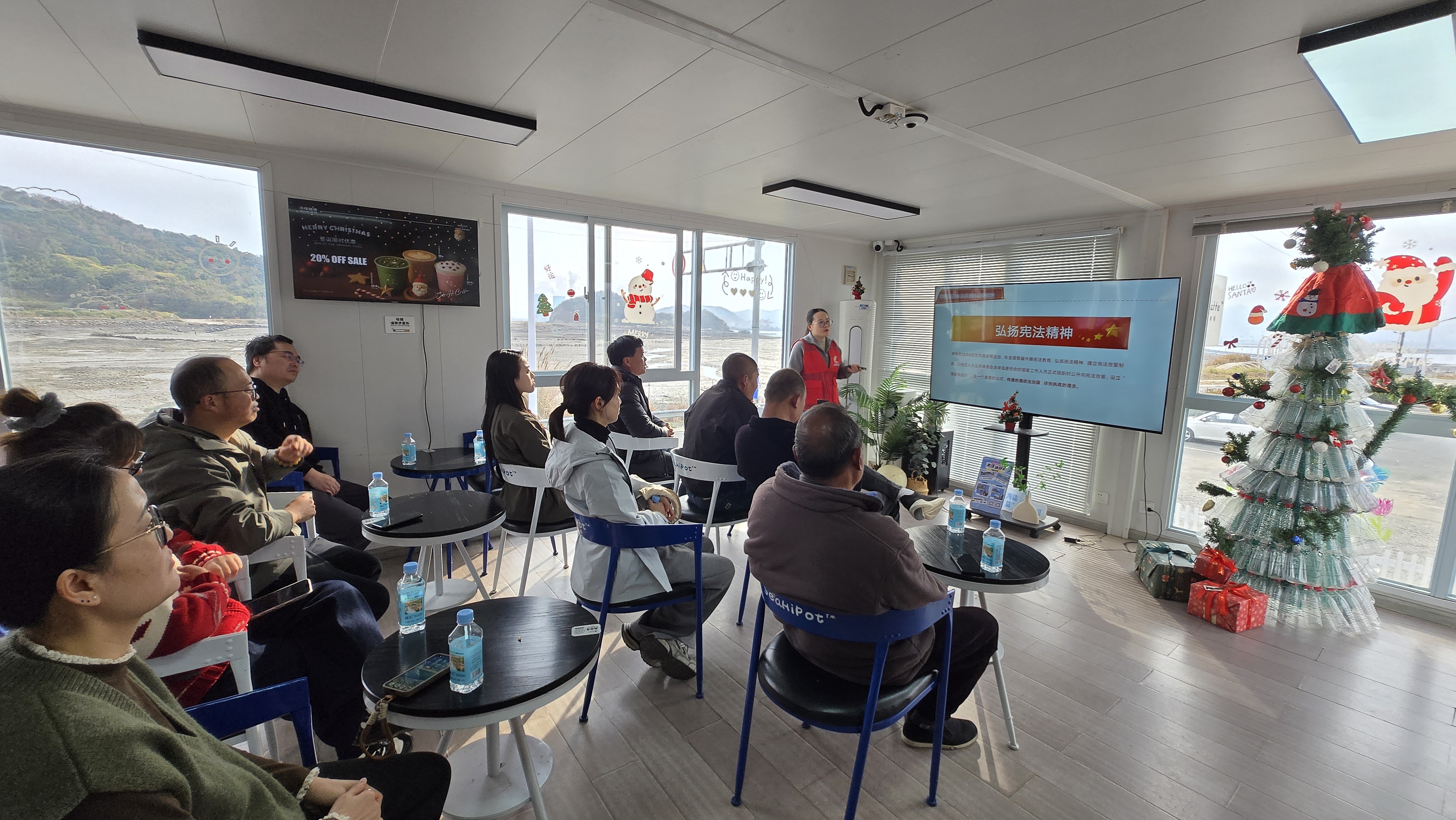 这场活动由一场深入浅出的海洋环境保护普法讲座拉开序幕,普法志愿者为栖凤村民讲解《宪法》相关规定,阐释个人行为与生态系统的密切联系。现场村民听得津津有味,不少人拿出手机拍摄课件内容。