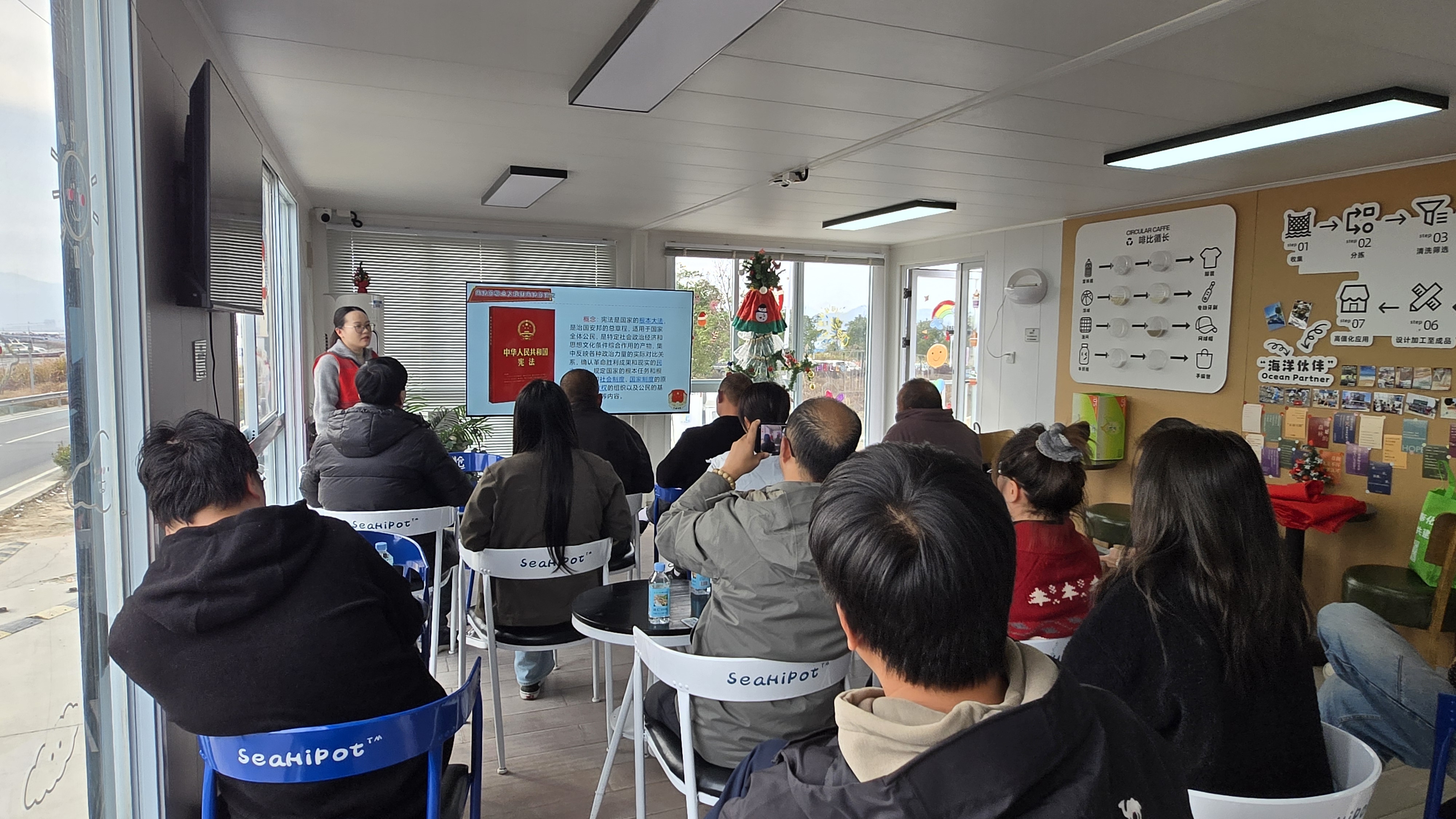 近日,“海洋伙伴”志愿队与奉化区生态环境局团支部共同开展“海洋伙伴共护蓝,宪法护航生态美”公益志愿活动。依托 “海洋伙伴环保舱” 沉浸式场景,聚焦宪法中生态环境保护、自然资源合理利用等相关条款,面对沿海渔民开展通俗化普法宣传,增强公民宪法意识与法治观念;搭建 “环保实践 + 法治宣传” 双维度平台,推动形成 “学法懂法、爱海护海” 的社会共识,助力生态文明建设与法治社会构建。