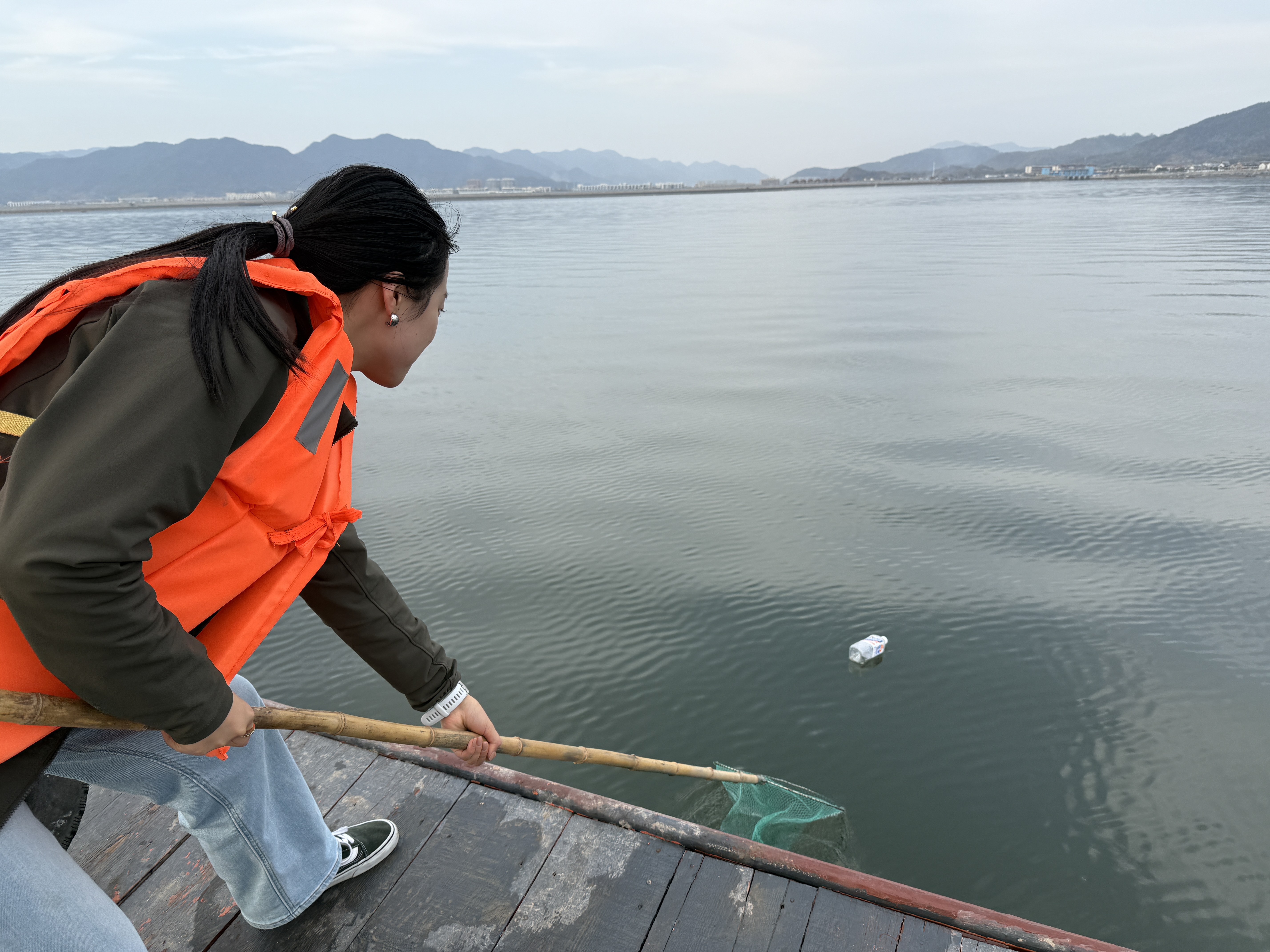 随后志愿者与工作人员共同登上船只,开展近海漂浮垃圾清理作业。 行动队沿着海岸线缓缓航行,目光专注地扫视海面。很快,他们发现了第一批目标——随着潮水起伏的塑料瓶、泡沫碎片和废弃渔网。