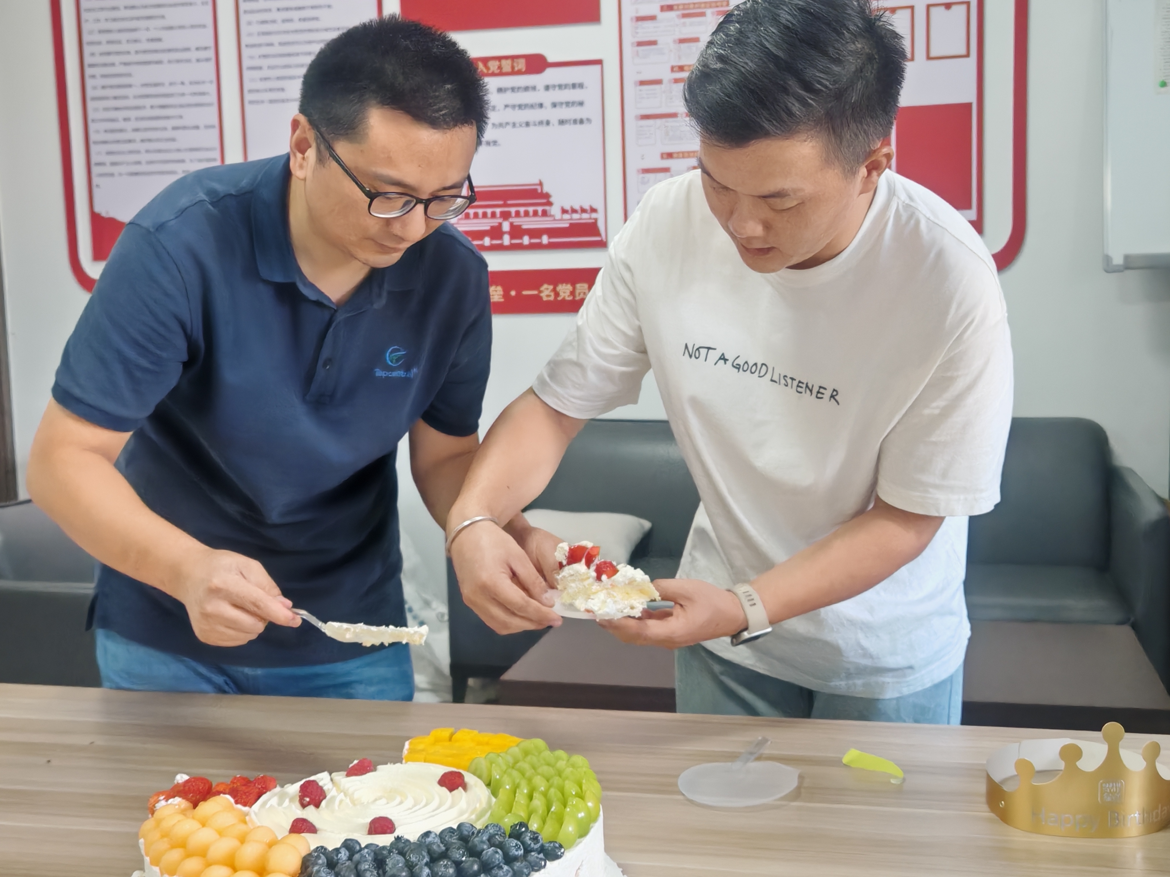 生日会简约而温馨。平日里,大家或许因项目而电话沟通,或许在走廊擦肩而过,而此刻,来自研发、市场、销售、行政等各个部门的寿星们齐聚一堂,暂时放下手头的工作,像家人一样围坐在一起。没有竞技的紧张,只有欢声笑语;没有部门的界限,只有其乐融融的大家庭氛围。
